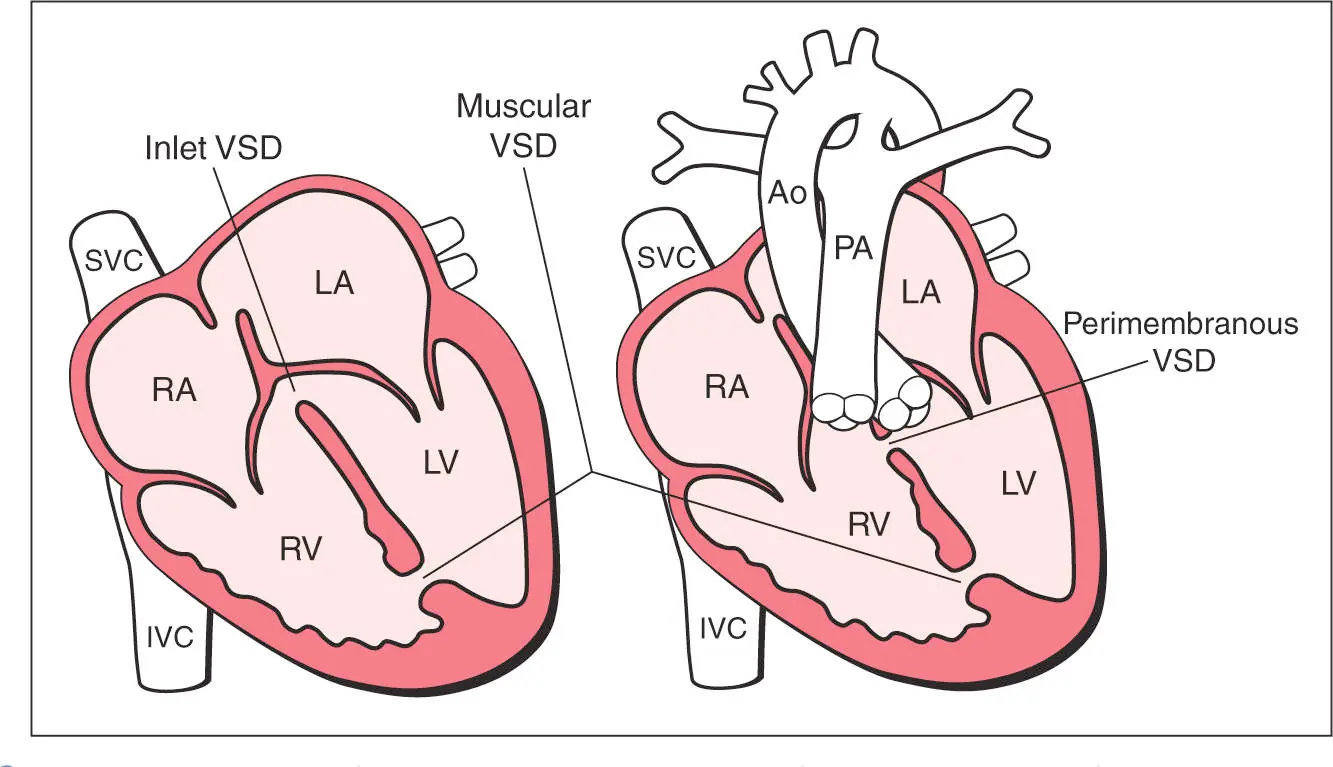- systole: LV contracts → blood travels through VSD into RV and into the pulmonary arteries.