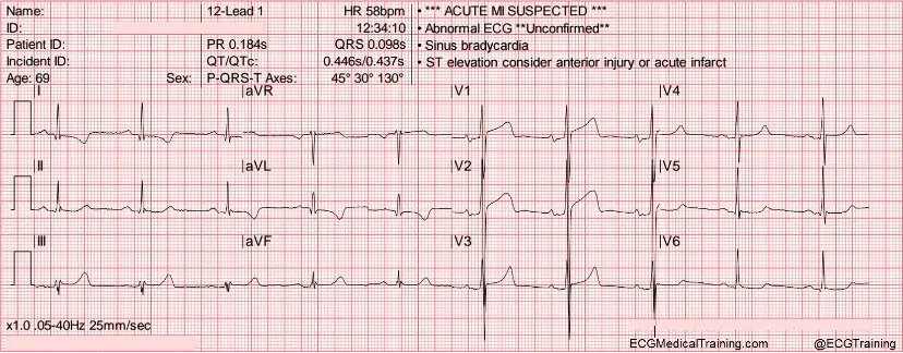 - In the above example, because the ST-segment elevation is < 1 mm the computer is not giving the