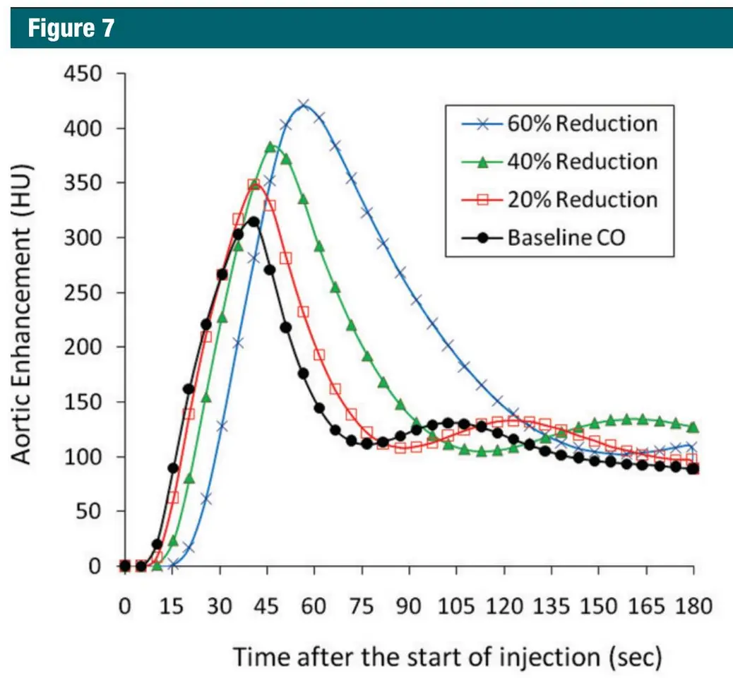 Bae KT, Heiken JP, Brink JA. Aortic and hepatic contrast medium enhancement at CT. Part II. Effect of reduced cardiac output in a porcine model. Radiology. 1998 Jun;207(3):657-62. doi: 10.1148/radiology.207.3.9609887. PMID: 9609887. ↩