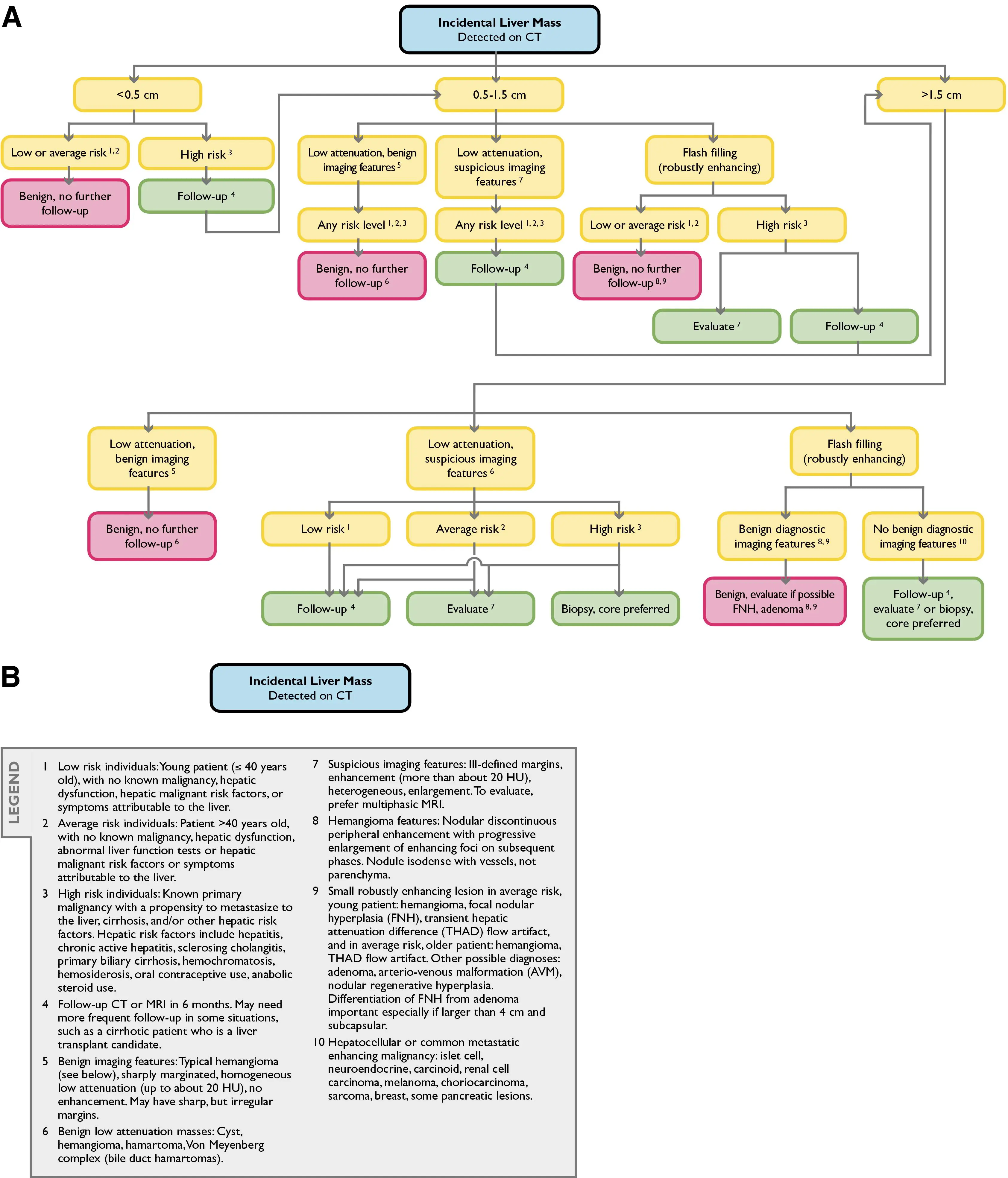 Berland LL, Silverman SG, Gore RM, Mayo-Smith WW, Megibow AJ, Yee J, Brink JA, Baker ME, Federle MP, Foley WD, Francis IR, Herts BR, Israel GM, Krinsky G, Platt JF, Shuman WP, Taylor AJ. Managing incidental findings on abdominal CT: white paper of the ACR incidental findings committee. J Am Coll Radiol. 2010 Oct;7(10):754-73. doi: 10.1016/j.jacr.2010.06.013. PMID: 20889105. ↩ ↩2 ↩3 ↩4