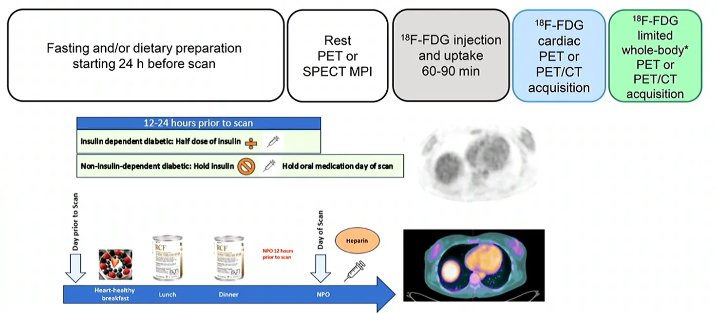 - Limited whole-body PET study using the same 18F-FDG injection should be performed in addition to the dedicated cardiac 18F-FDG study