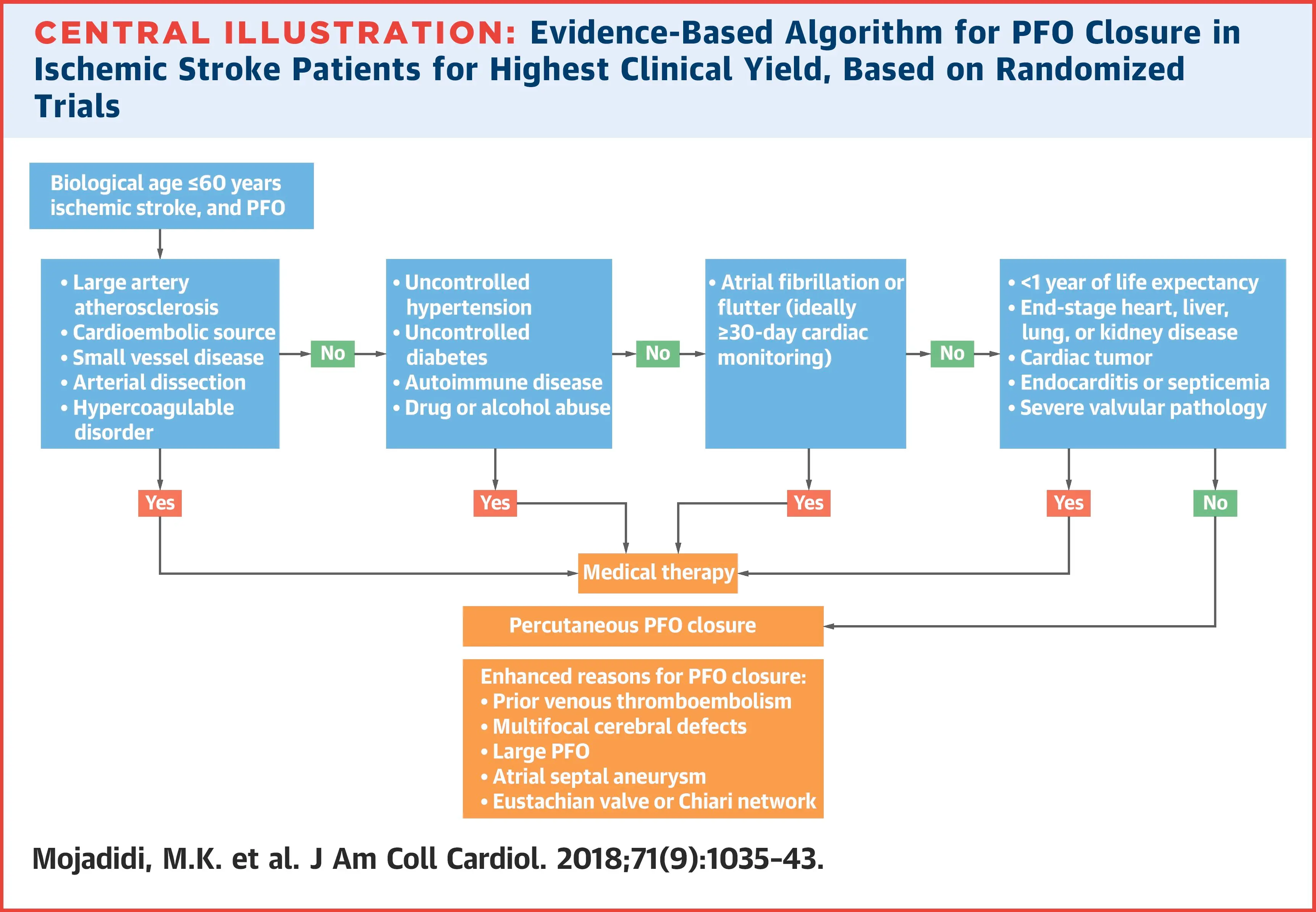 Mojadidi MK, Zaman MO, Elgendy IY, Mahmoud AN, Patel NK, Agarwal N, Tobis JM, Meier B. Cryptogenic Stroke and Patent Foramen Ovale. J Am Coll Cardiol. 2018 Mar 6;71(9):1035-1043. doi: 10.1016/j.jacc.2017.12.059. PMID: 29495983. ↩