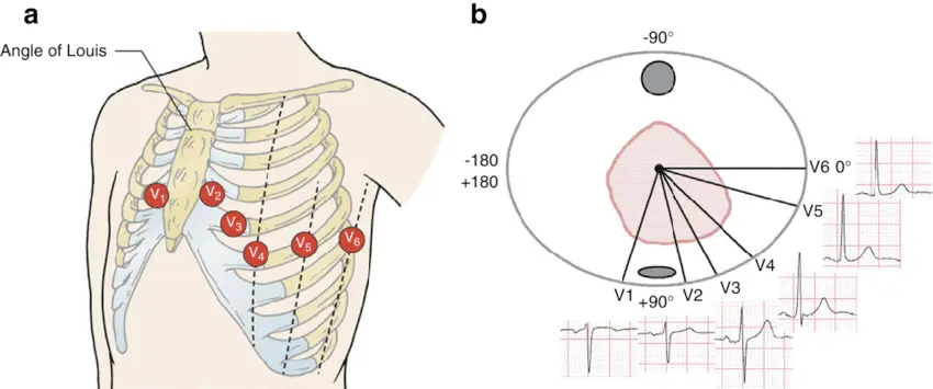 Precordial leads: V1-V6