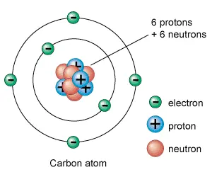 Almost all of the mass of an atom is in the nucleus of neutrons and protons. They are surrounded by a cloud ☁️ of electrons ⚡.