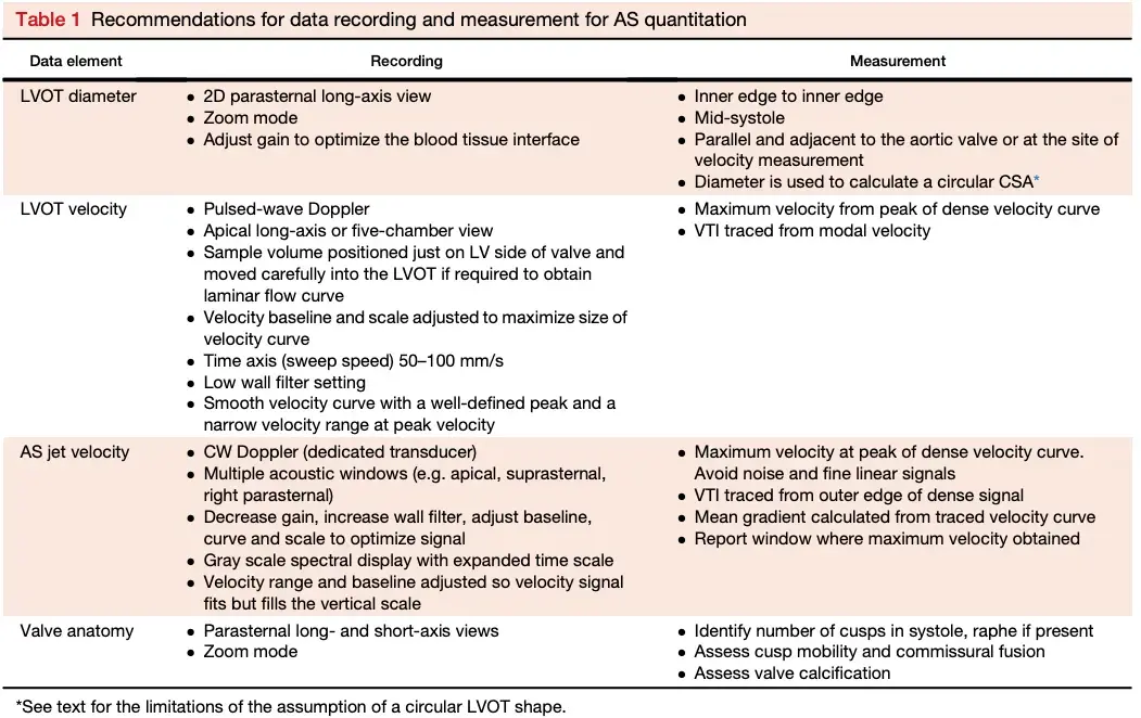 - small valve area: the AV is tight and doesn’t open up properly → quantify the aortic valve area (AVA)