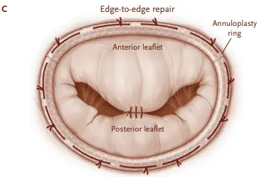 - Approximates the anterior and posterior leaflets of the MV at the origin of the MR jet, creating a double-orifice MV that is similar to the surgical Alfieri stitch