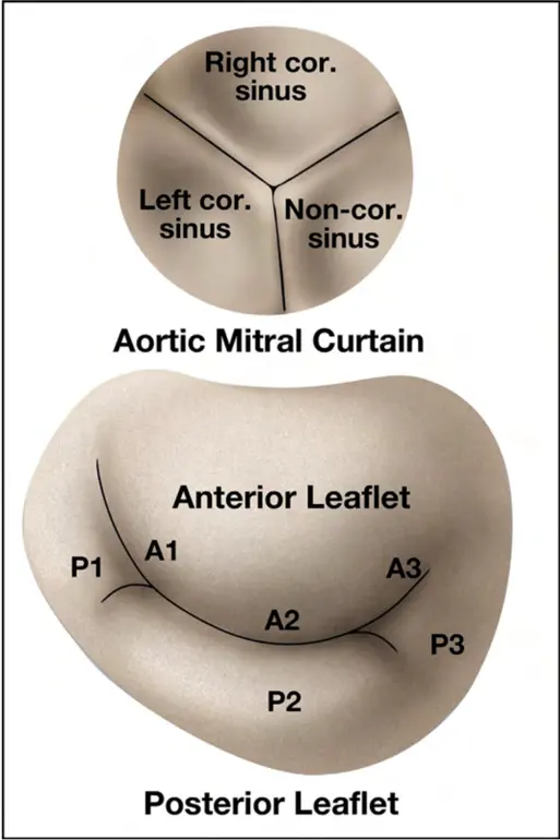 - The valve has anterior and posterior leaflets, and each leaflet typically consists of three discrete segments or scallops.1