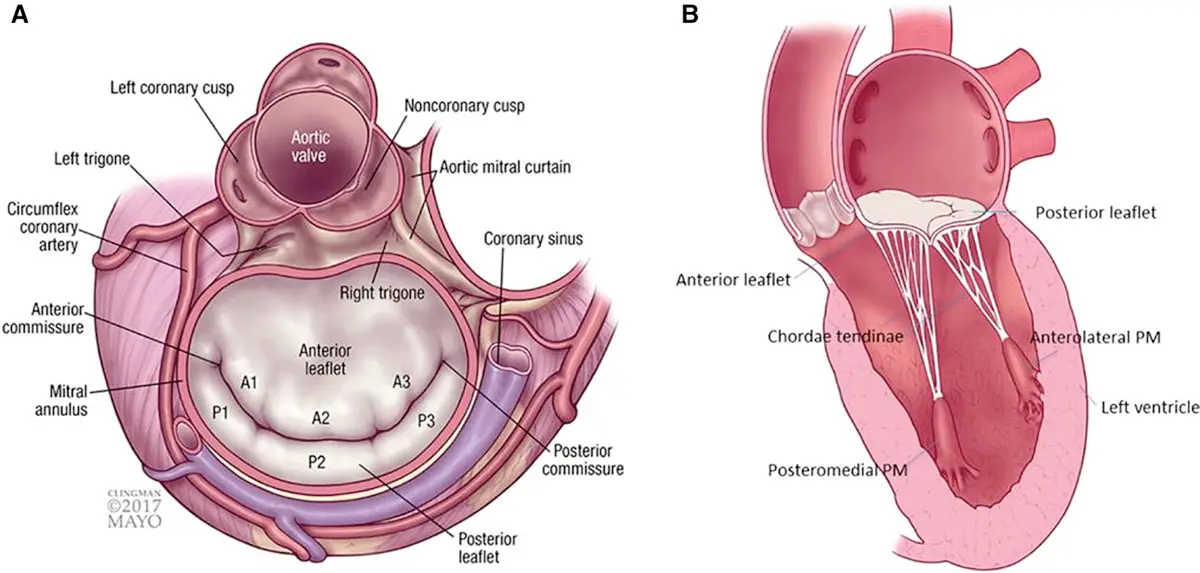 - The mitral valve and subvalvular apparatus include the annulus, valve leaflets, chordae tendineae, papillary muscles, and left ventricular wall.1