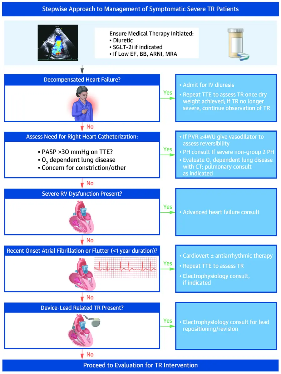Welle GA, Hahn RT, Lindenfeld J, Lin G, Nkomo VT, Hausleiter J, Lurz PC, Pislaru SV, Davidson CJ, Eleid MF. New Approaches to Assessment and Management of Tricuspid Regurgitation Before Intervention. JACC Cardiovasc Interv. 2024 Apr 8;17(7):837-858. doi: 10.1016/j.jcin.2024.02.034. PMID: 38599687. ↩ ↩2 ↩3 ↩4 ↩5 ↩6 ↩7 ↩8