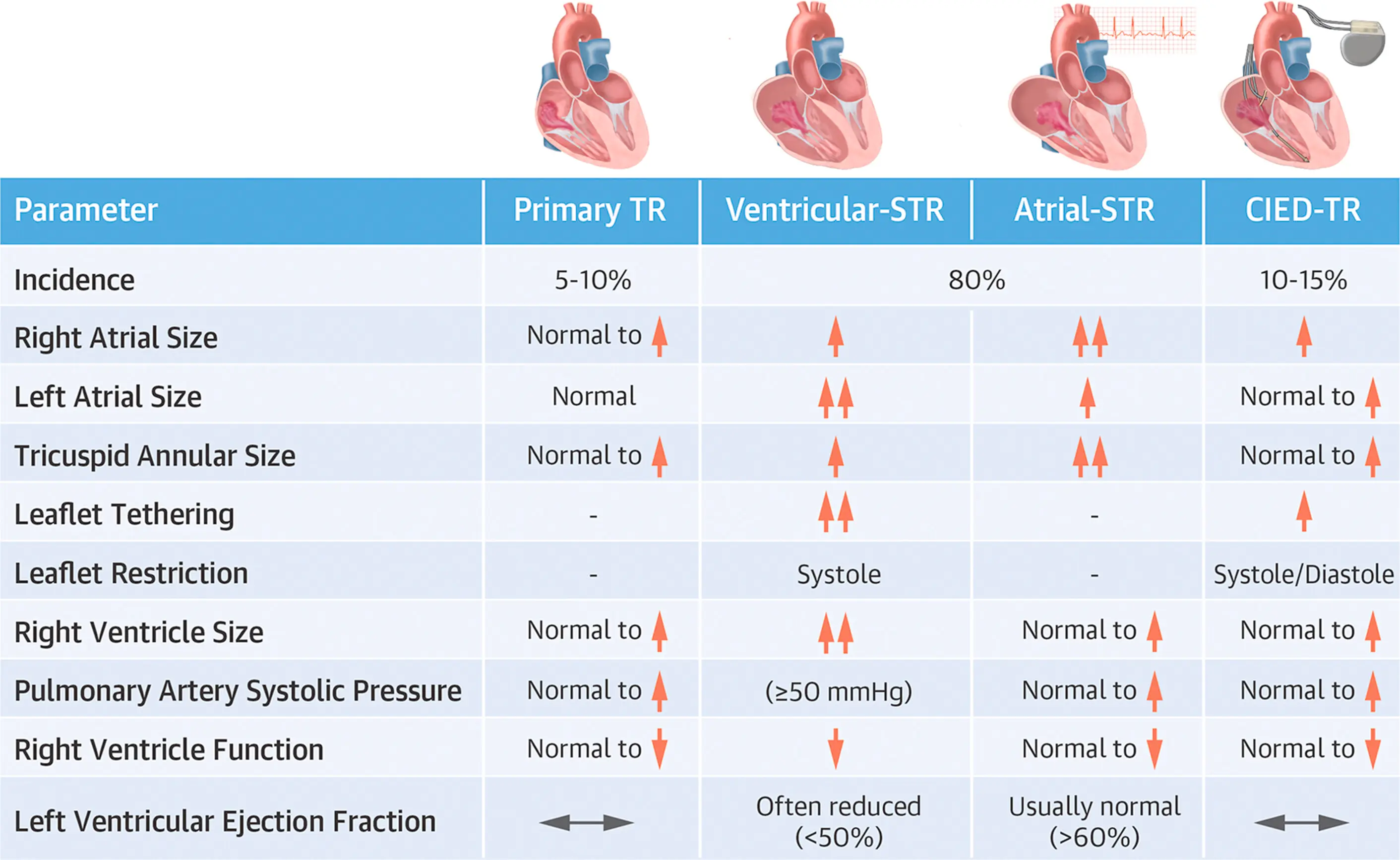 - Patients with TR commonly have coexisting conditions including HF, pulmonary hypertension, chronic lung disease, AFib, and cardiovascular implantable electronic devices